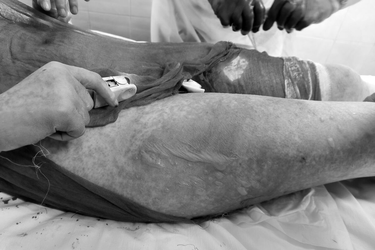 К тому времени врачи поставили диагноз — синдром Лайелла с летальностью до 70%. Это состояние требует немедленного лечения из-за риска обезвоживания, сепсиса и поражения внутренних органов. Малейшее прикосновение к телу пациента приводит к тому, что кожа моментально вздувается и снимается наподобие чулка.