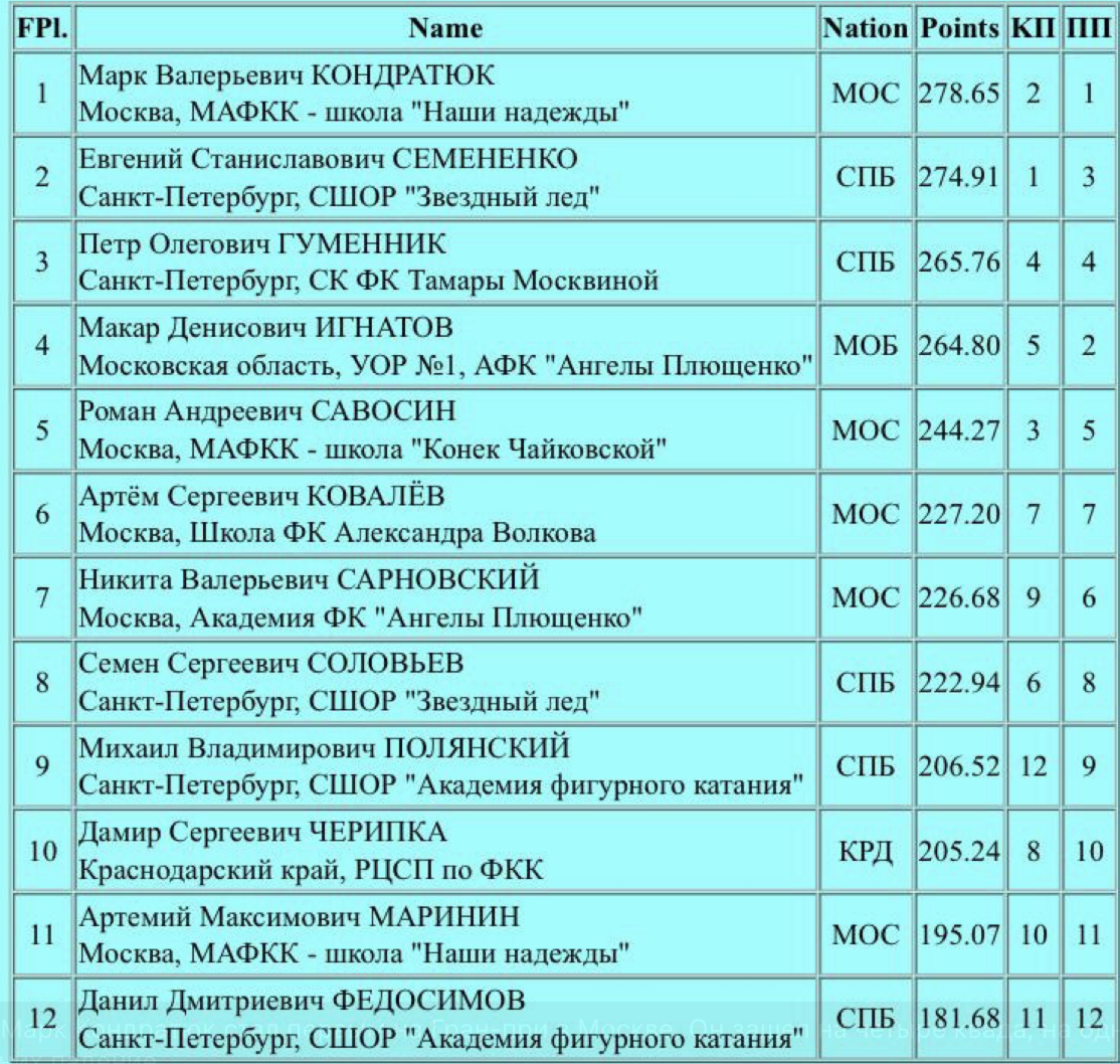 Оценка Гуменника за произвольную программу — 175,54, общая сумма — 265,76. Петр улыбается и, кажется, совсем не переживает из-за падений. В конце концов, это лишь подготовка для него к Олимпийским играм. И даже с ошибками Гуменник выходит на промежуточное первое место!