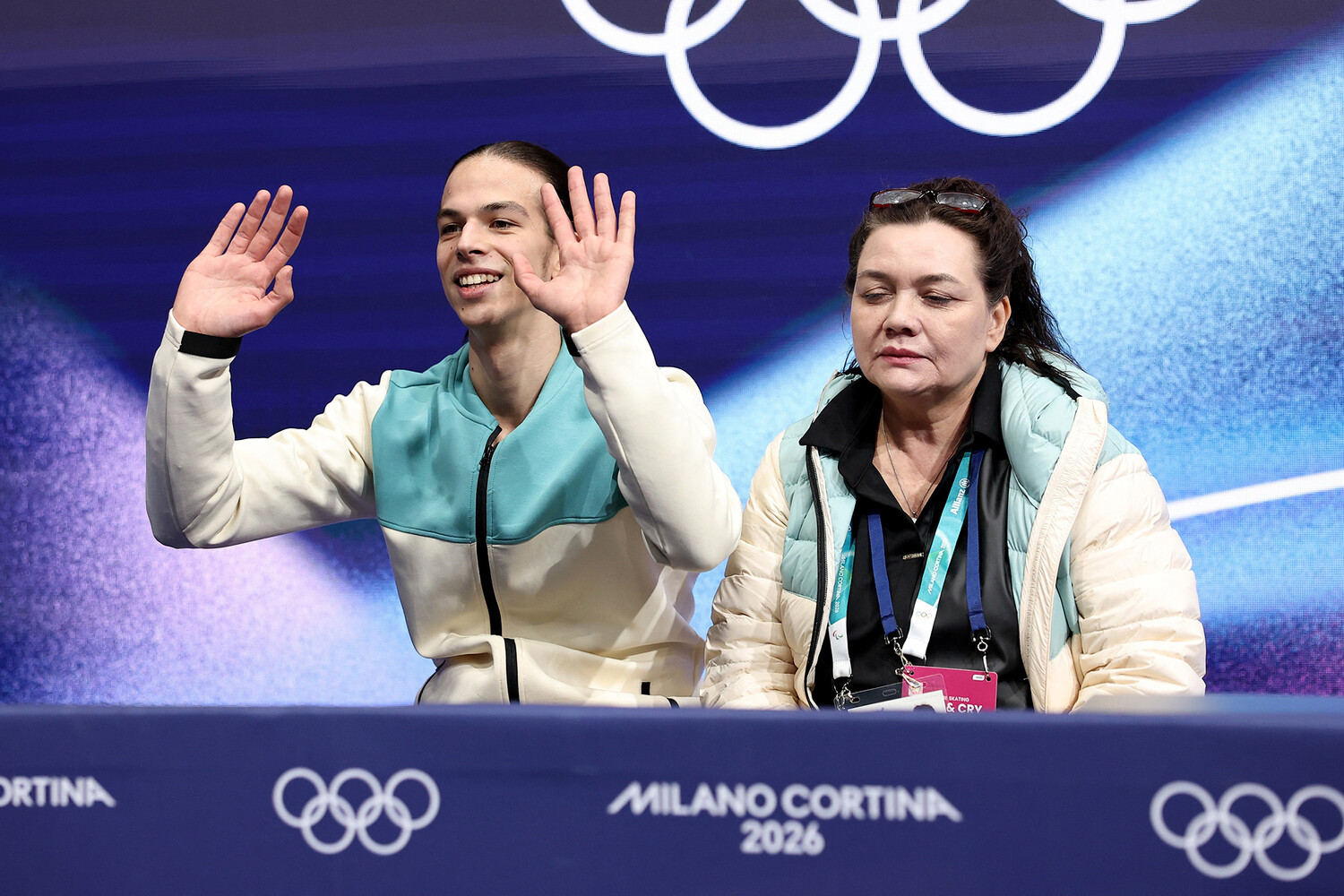 Оценка Кирилла Марсака — 86,89 балла! Фигурист и его тренер визжат от счастья. Это лучший прокат в его карьере и лучшие баллы в жизни! Молодец!