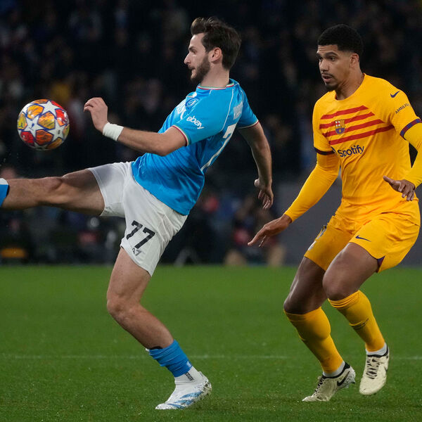 В первом матче, который прошел в Италии, был зафиксирован счет 1:1. На 60-й минуте форвард гостей Роберт Левандовски получил в штрафной пас от Педри, сместился чуть ближе к центру и из-под защитников пробил низом точно в ближний угол. На 75-й минуте форвард «Наполи» Виктор Осимхен в штрафной спиной получил пас, развернул защитника Иньиго Мартинеса и низом катнул мяч в дальний нижний угол.