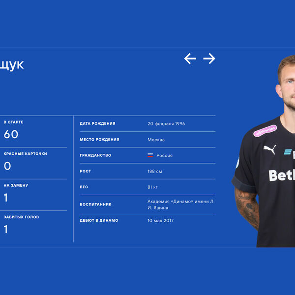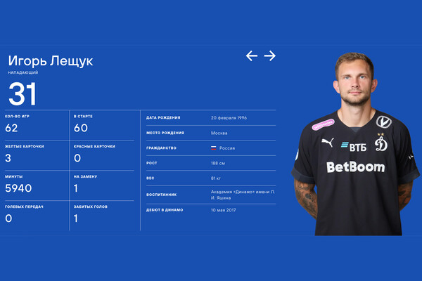 Московское «Динамо» переместило голкипера Игоря Лещука в список нападающих. Обновление было сделано на официальном сайте команды.