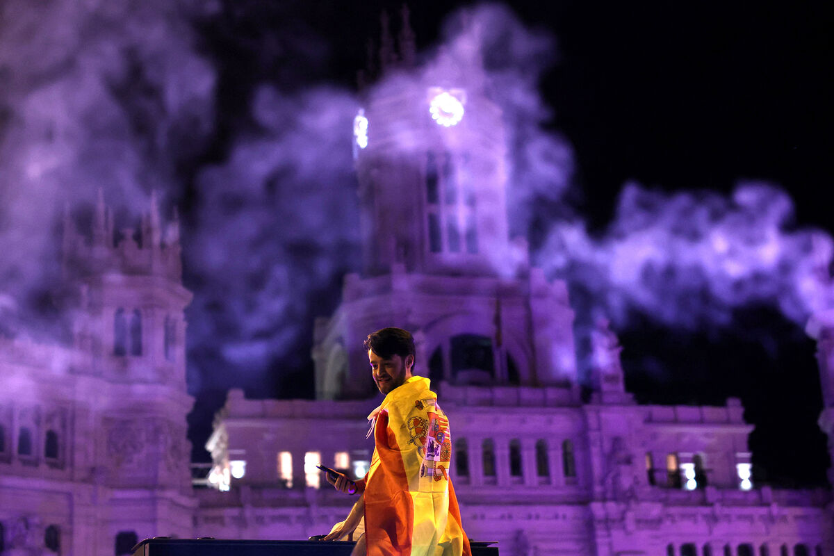 Во время празднования одного из голов несколько человек, поддерживающих испанский клуб, размахивали флагом.