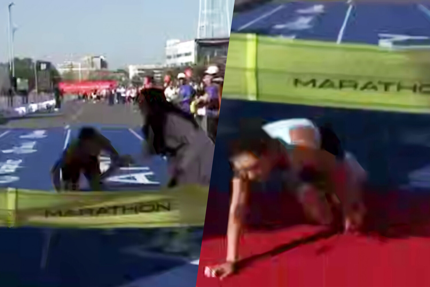 Россиянка на четвереньках доползла до финиша марафона, отбиваясь от зрителя