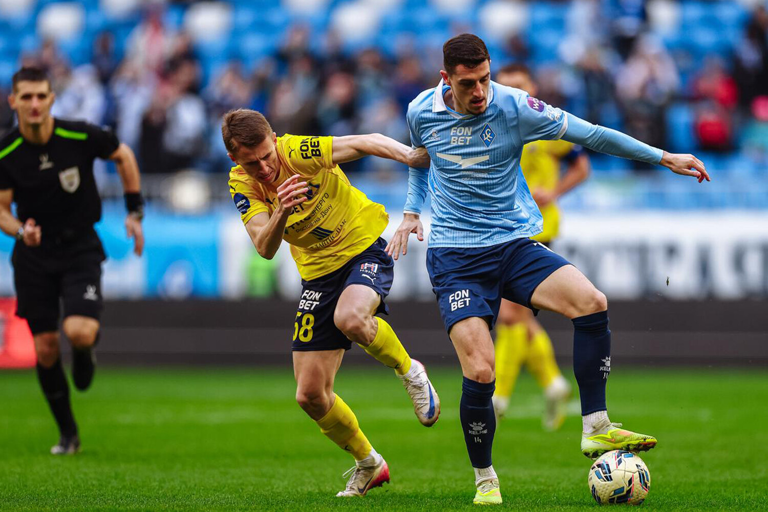 Божину досталось по ногам от Сулейманова. Медики выбежали на газон. Но, кажется, продолжит игру футболист «Крыльев».