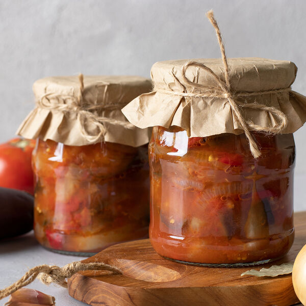 - Поставьте банки в кастрюлю с теплой водой, доведите до кипения и кипятите еще 20 минут при медленном бурлении. Закатайте банки, переверните и укутайте до полного остывания. Баклажанную икру можно использовать в качестве закуски, намазывать ее на хлеб или добавлять в различные блюда (в овощное рагу, супы или соусы).