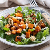 Такой салат можно разнообразить оливками, семечками подсолнуха или льна, а также кусочками авокадо. Это блюдо хорошо подходит в качестве легкого обеда или ужина.