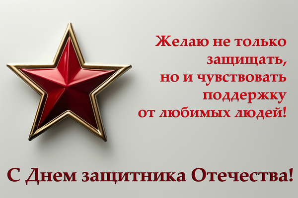 • С Днем защитника Отечества! Вы — главные защитники нашего дела! Пусть любые задачи будут вам по плечу! Желаем больших премий и солнечных дней в отпусках!