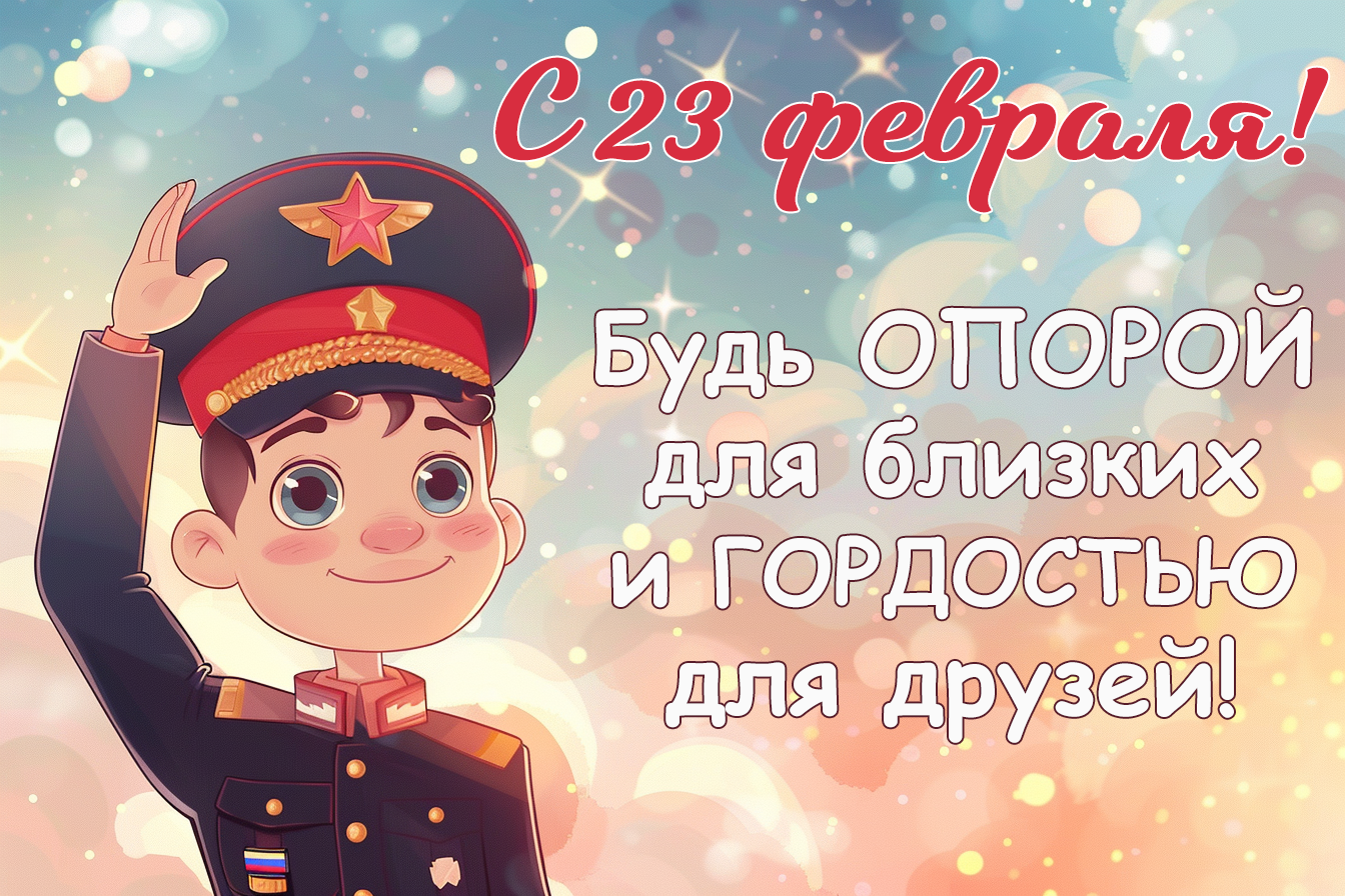 • С праздником! Еще в детстве ты проявлял себя как настоящий защитник. Желаю тебе крепкого здоровья, удачи и боевого настроя!