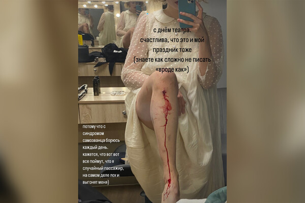 Звезда «Холопа», российская актриса театра и кино Александра Бортич опубликовала фотографию в Instagram (владелец компания Meta признана в России экстремистской и запрещена), показав сценический образ с окровавленной ногой.
