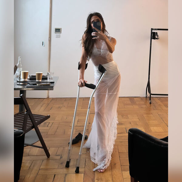 Виктория Бекхэм в прозрачном платье и на костылях отметила свое 50-летие