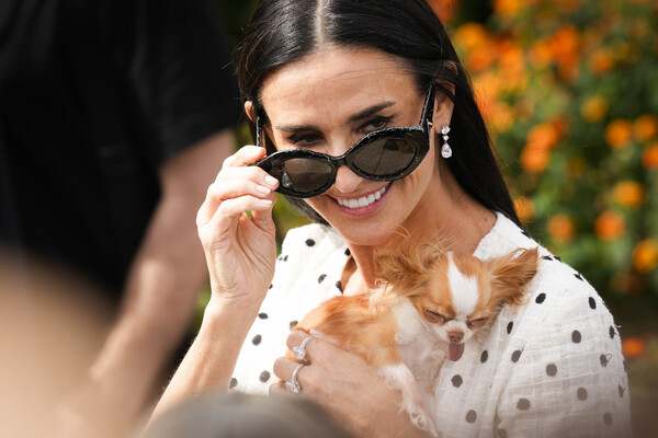 До этого Деми Мур с собакой и ее дочь Скаут Уиллис пришли на показ весенне-летней коллекции Dior Homme. Актриса предпочла костюм с мини-юбкой, жакетом и рубашкой. Образ дополнили белые босоножки и большая сумка. Скаут Уиллис вышла в свет в мини-платье с анималистичным принтом, темно-коричневой жилетке, белых носках и черных кожаных лоферах.
