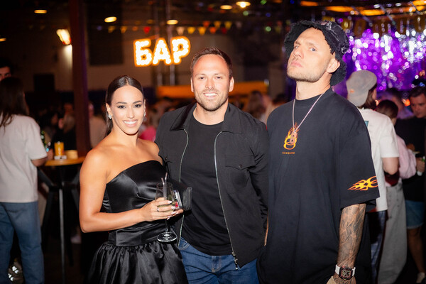 4 сентября прошла закрытая вечеринка продакшн-компании Medium Quality. Гостями вечера стали Алексей Столяров с новой возлюбленной. Для выхода на публику она выбрала черное атласное платье-бюстье с юбкой-колокольчик.