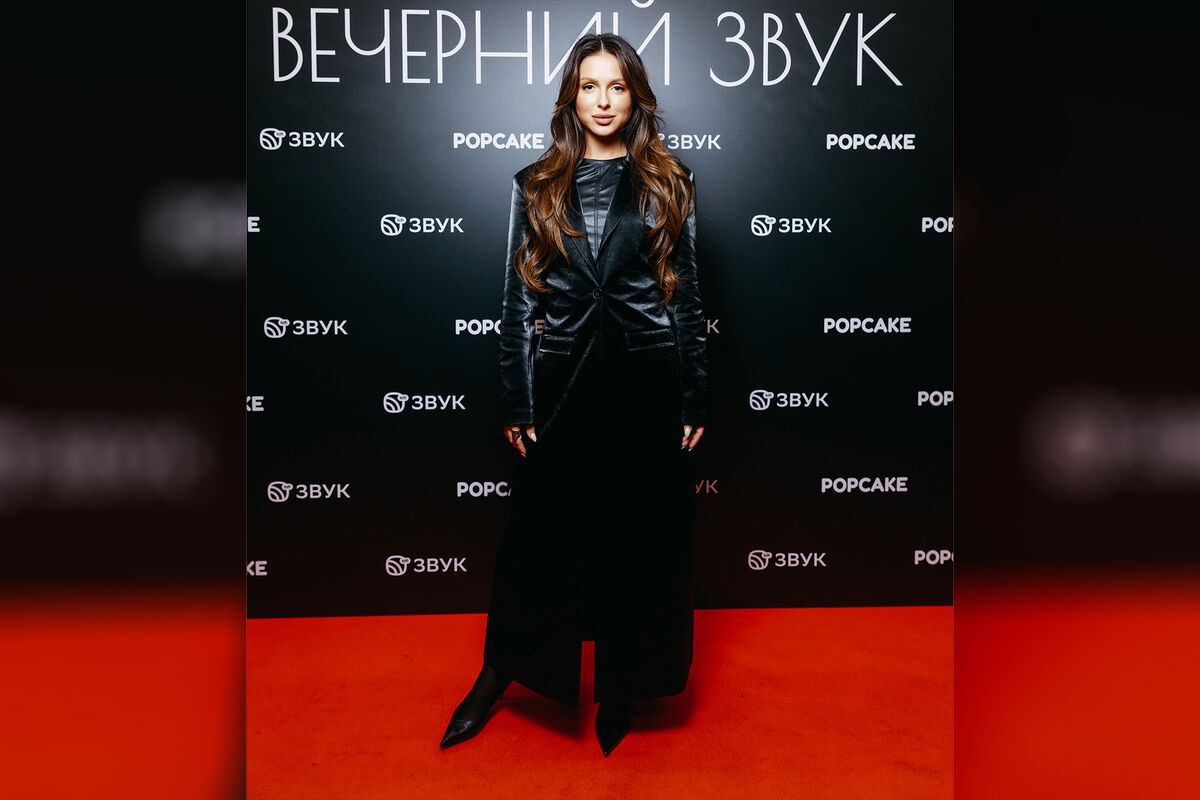 Нюша вышла на публику в черных брюках палаццо, бархатном жакете и кожаном топе. Ей также сделали укладку с голливудскими волнами и макияж с угольно-черными стрелками и кремовой помадой.