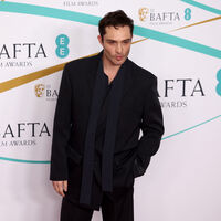 На новых фото актриса позировала в облегающем белом платье-бюстье с разрезом на бедре. Наряд подчеркнул округлившийся живот Джексон. Ей также сделали укладку с локонами и нюдовый макияж с розовой помадой. Актер был одет в белую футболку и черные брюки.