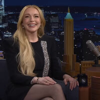 Актриса Линдси Лохан появилась на Tonight Show Джимми Феллона. Снимками она поделилась в Instagram (владелец компания Meta признана в России экстремистской и запрещена).