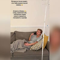 На снимке Кристина Асмус была запечатлена сидя на диване с чашкой. К руке знаменитости была проведена трубка от капельницы. Актриса пояснила, что снимок был сделан новым возлюбленным после ее рабочей смены.
