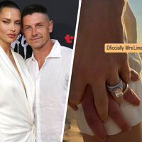 43-летняя Адриана Лима опубликовала фото, на котором они с Андре Леммерсом держались за руки. Супермодель и продюсер были запечатлены с обручальными кольцами на фоне пустыни.