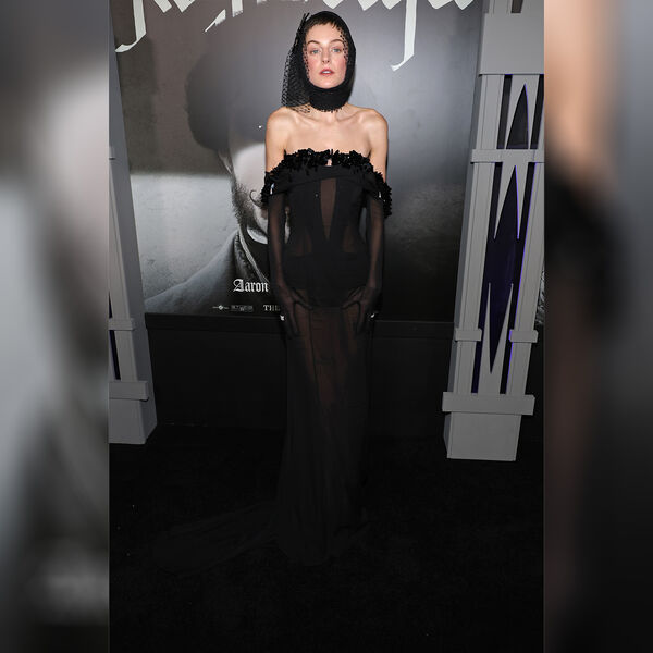 Эмма Коррин стала гостьей премьеры фильма ужасов «Носферату». Для выхода на публику она предпочла полупрозрачное черное платье от бренда Miu Miu, которое дополнила необычным головным убором.