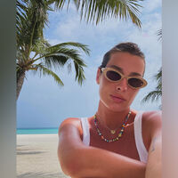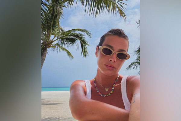 Кети Топурия улетела отдыхать с семьей к океану. Перед камерой она позировала в белом купальнике и солнцезащитных очках. На фоне было видно пальмы и океан.