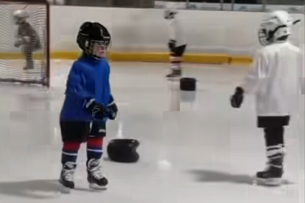 Татьяна Брухунова показала, как сын вышел на лед и играет в хоккей со своими сверстниками.