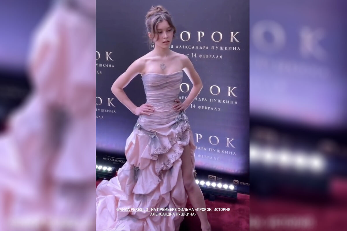 15-летняя Анна Пересильд посетила премьеру фильма «Пророк. История Александра Пушкина», которая состоялась 3 февраля в Михайловском театре. На мероприятии актриса позировала в розовом платье-бюстье с разрезом до бедра из кутюрной коллекции Valentin Yudashkin «Золотой век». Знаменитость также надела цепочку с кулоном и серебристые туфли на каблуках. Дочери Юлии Пересильд сделали укладку и макияж в нюдовых тонах.