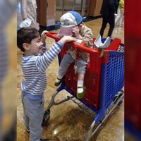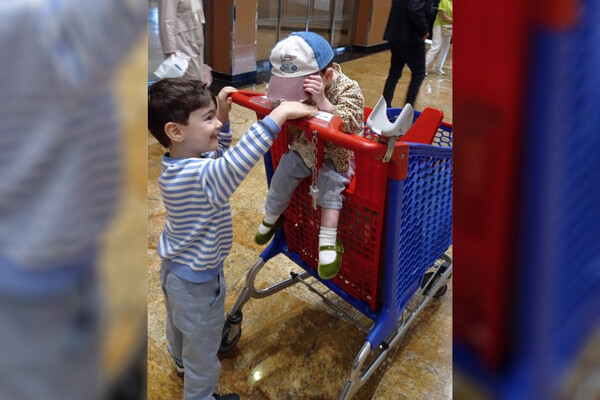 35-летняя Татьяна Брухунова показала, как катает на тележке по ТЦ своего сына Вагана и дочь Матильду. Девочка была одета в зеленые бархатные туфли, брюки и рубашку.