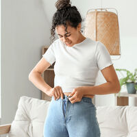 Так, например, она посоветовала избегать обтягивающих скинни с футболкой из тонкого трикотажа облегающего кроя. Помимо этого, эксперт посоветовала «усложнять» образ. Например, выбирать футболку с принтом, надевать на нее жакет или кардиган или добавлять яркие аксессуары.
