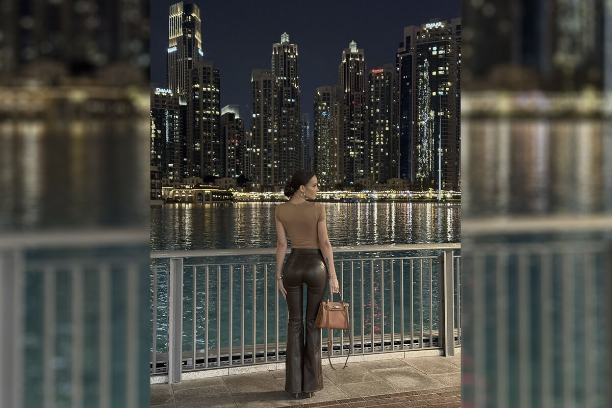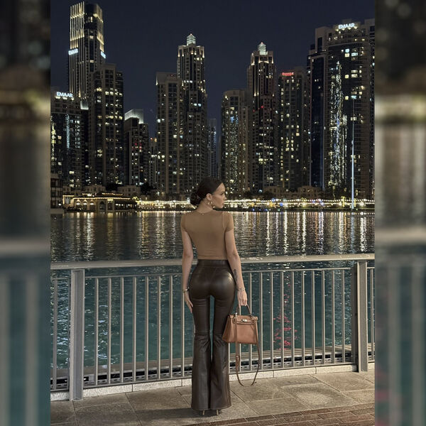 23-летняя Валя Карнавал позировала в коричневом облегающем топе, который дополнила шоколадными кожаными штанами, туфлями на каблуках и кожаной сумкой Hermès. Блогерша завершила образ золотыми украшениями: массивными серьгами, несколькими браслетами и кольцами. Знаменитость была запечатлена с уложенными волосами в пучок в Дубае.