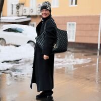 36-летняя Татьяна Брухунова была запечатлена в черном длинном пальто, джоггерах, серых носках и сабо. Жена Евгения Петросяна дополнила свой образ шапкой Chanel с логотипом бренда, очками для зрения и черной кожаной сумкой-шопером Saint Laurent. Стоимость последнего аксессуара на официальном сайте марки составляет €4100 (около 388 тысяч рублей — прим. ред.).