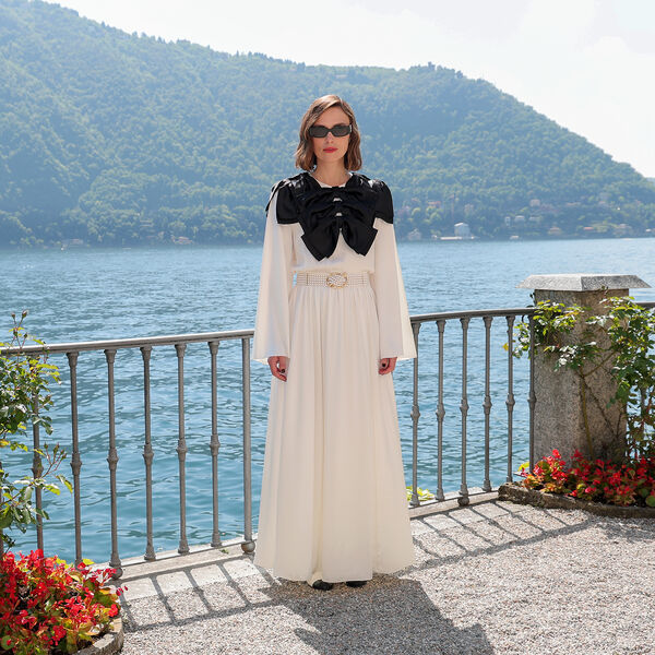 Круизную коллекцию модного дома представила дизайн-команда бренда. Актриса предпочла для показа белое платье с крупными черными бантами от бренда. Образ дополнил жемчужный пояс с золотой пряжкой. Однако поклонники не оценили образ Киры Найтли.