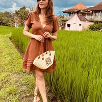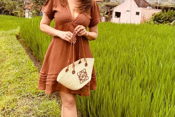 47-летняя Анфиса Чехова предстала перед камерой в коричневом льняном мини-платье с декольте, которое дополнила солнцезащитными очками, кольцом, плетеной сумкой Loewe и кожаными сандалиями. Телеведущая также надела золотую цепочку с кулоном и кольца. Блогерша позировала с распущенными волосами и макияжем в естественном стиле на Бали.