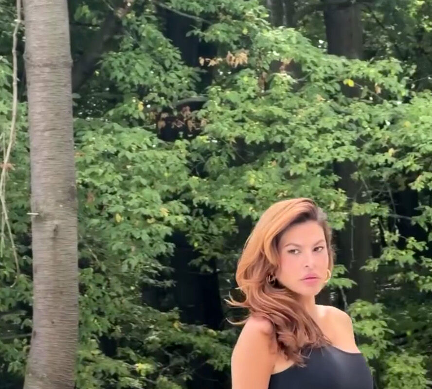 51-летняя Ева Мендес позировала в черном слитном купальнике и парео в тон, которое повязала себе на бедра. Актриса также надела золотые серьги и кольца. Знаменитость была запечатлена с уложенными распущенными волосами и макияжем в естественном стиле.