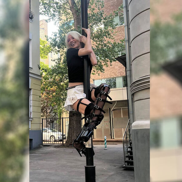 Певица Глюкоза (Глюк'оZа, Наталья Чистякова-Ионова) в мини-юбке залезла на столб. Поп-исполнительница опубликовала фото в своем Telegram-канале.