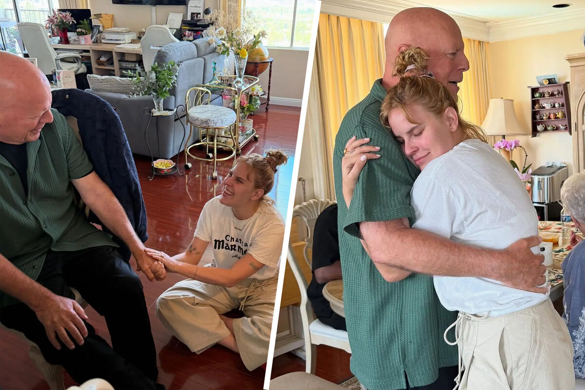 На одном из снимков Таллула Уиллис обнимается с родителем, стоя в гостиной. На другом снимке девушка сидит на полу и держит за руку своего отца. Брюс Уиллис был запечатлен в зеленой рубашке, черной футболке и брюках. Дочь актера позировала в белой футболке с надписью и светлых брюках.