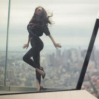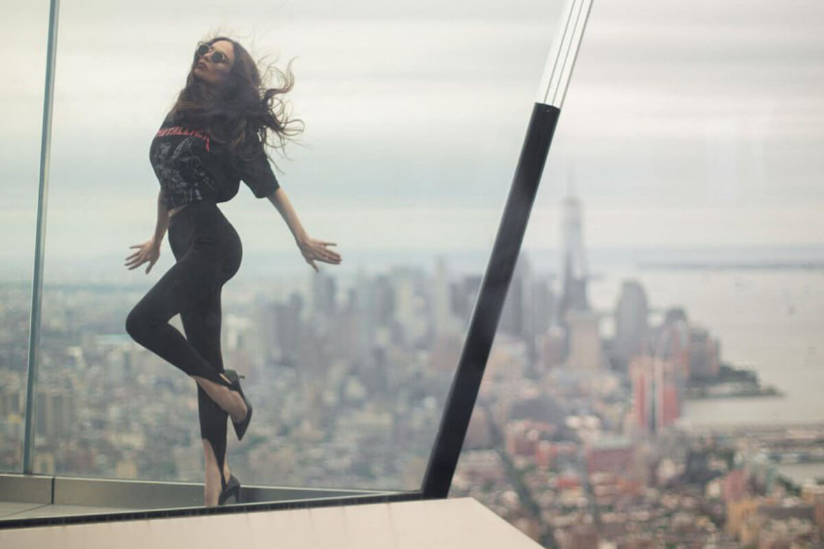 42-летняя Алена Водонаева позировала в черных легинсах, футболке с принтом и туфлях на высоких каблуках. Волосы она распустила, выпрямила и сделала вечерний макияж. Съемка прошла на остекленной крыше небоскреба в Нью-Йорке.