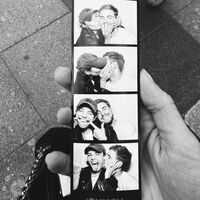 Пара появилась на премьере фильма «Плагиатор», где актриса сыграла главную роль. Для выхода на публику актриса предпочла голубое мини-платье с бантом и глубоким декольте. Перед папарацци пара обнималась и позировала вместе.