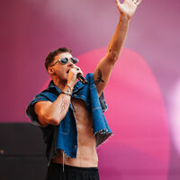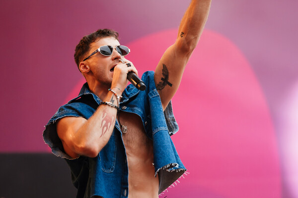 Олег Майами с полуголым торсом выступил на главной сцене мероприятия. Певец вышел на публику в джинсовой рваной жилетке, черных брюках и солнцезащитных очках. При этом исполнитель не стал надевать футболку.
