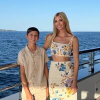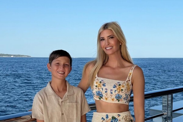 43-летняя Иванка Трамп предстала перед камерой в бежевом комплекте, который состоял из топа и юбки-миди. Дочь Дональда Трампа также надела серьги с жемчугом. Бизнесвумен позировала вместе с сыном на палубе яхты.