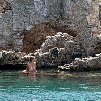 27-летняя Елизавета Пескова была запечатлена в розовом крошечном бикини и солнцезащитных очках. Дочь пресс-секретаря президента России позировала с мокрыми распущенными волосами в водоеме на фоне скалы.
