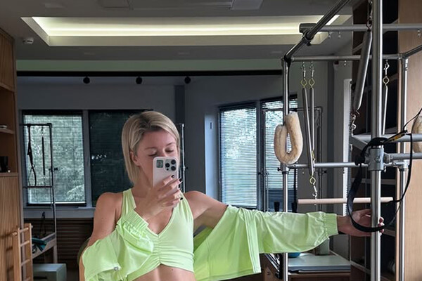 Юлианна Караулова показала фигуру в крошечном зеленом топе с глубоким декольте, ветровке и серых легинсах во время тренировки на пилатесе. Волосы она распустила и отказалась от макияжа.