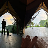 «Это было превосходным решением. Вместо кинофестивалей и раутов.. Палатки, лес, сапы, ледяные купели, баня в чаще леса, собирание ягод, 3 дня спорта на улице, ужин на пирсе, маршмеллоу на костре, катамараны и любимые лапы рядом. Аж 8 штук», — написала артистка.