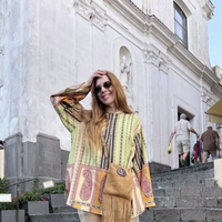 43-летняя Наталья Подольская вышла на публику в разноцветной блузе, которую дополнила короткими шортами и белой полупрозрачной юбкой. Поп-исполнительница также надела солнцезащитные очки и светлые казаки. Образ артистки завершила коричневая замшевая сумка с бахромой. Знаменитость позировала с распущенными волосами и макияжем в естественном стиле.