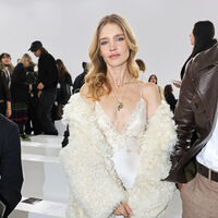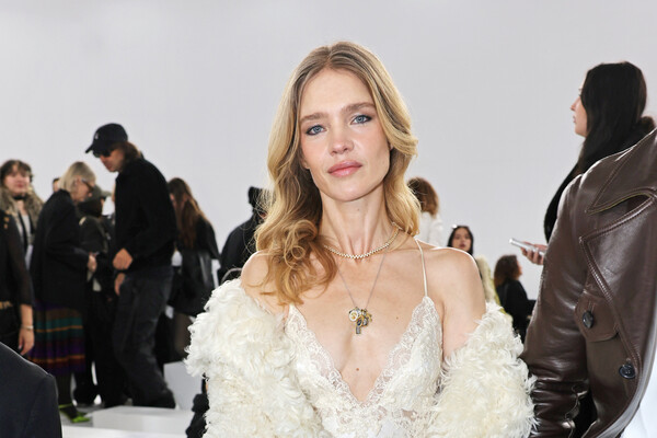 Наталья Водянова посетила показ бренда Ermanno Scervino, который прошел в Милане. Супермодель появилась на публике в белом платье-комбинации с глубоким декольте, длинной шубе и черных сапогах. Манекенщица дополнила образ золотыми ожерельями. Знаменитости уложили волосы в локоны и сделали макияж с черными стрелками.