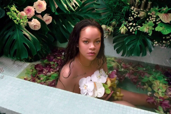 Рианна приняла участие в съемках рекламы геля для душа собственного бренда Fenty. В ролике поп-исполнительница сидела в ванне, украшенной цветами. Бизнесвумен прикрывала тело орхидеями. Певица позировала в серьгах и золотом ожерелье. Знаменитость была запечатлена с мокрыми распущенными волосами и без косметики.
