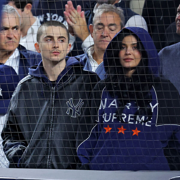 Тимоти Шаламе и Кайли Дженнер были замечены 8 октября в Нью-Йорке. Актер и модель посетили матч по бейсболу, в котором команда «Янкиз» играла с «Блю Джейс». Артист продемонстрировал на мероприятии новую короткую стрижку. Он был одет в синее худи и черный бомбер. Звезда реалити-шоу вышла на публику в худи с названием фильма «Марти Суприм», в котором Тимоти Шаламе сыграл роль профессионального игрока в настольный теннис Марти Маузера.