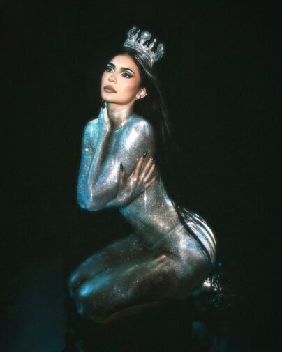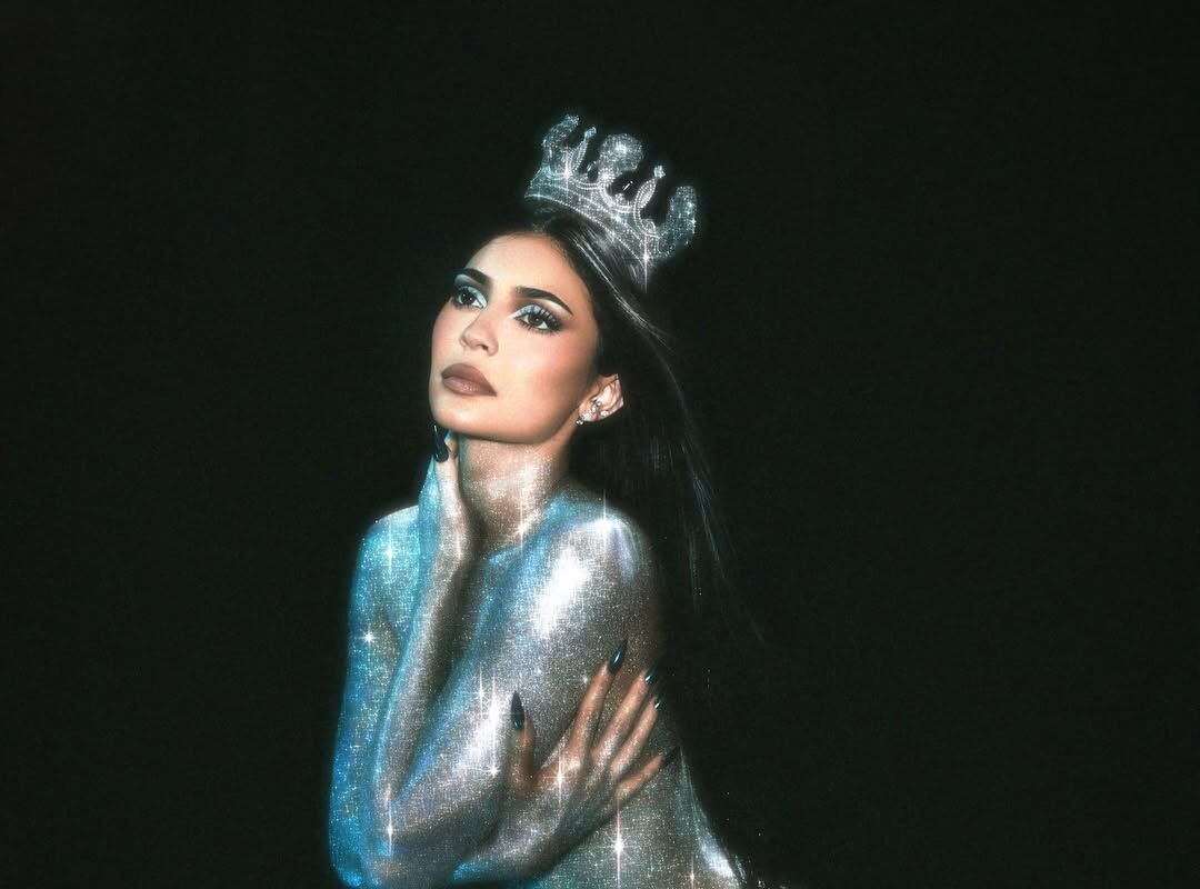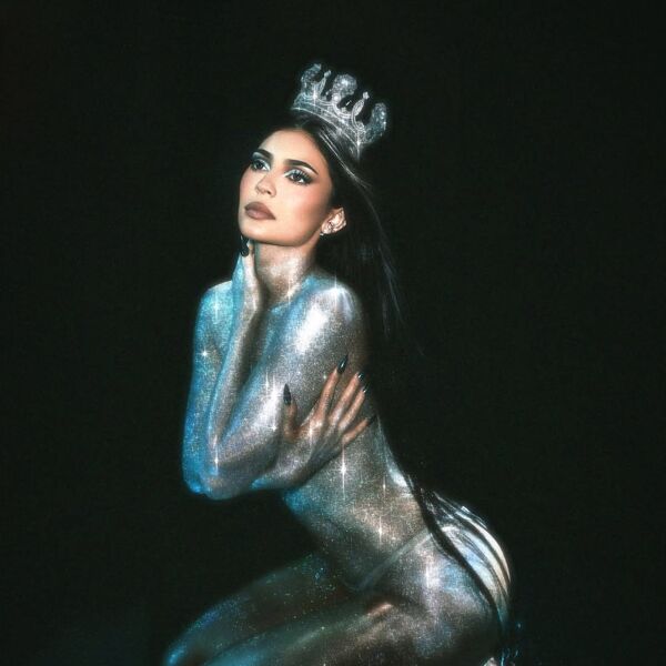28-летняя Кайли Дженнер презентовала новую коллекцию косметических средств своего бренда Kylie Cosmetics. В рекламе звезда реалити-шоу предстала в стрингах без бюстгальтера. Модель также надела босоножки и корону. Бизнесвумен нанесли на все тело блестки и сделали макияж с серебристыми тенями, темно-коричневой помадой и накладными ресницами.