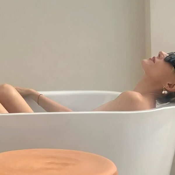 58-летняя Рената Литвинова предстала перед камерой без одежды, она надела только черные солнцезащитные очки Balenciaga и массивные серьги. Актриса сидела с уложенными волосами и макияжем с красной помадой в ванной.