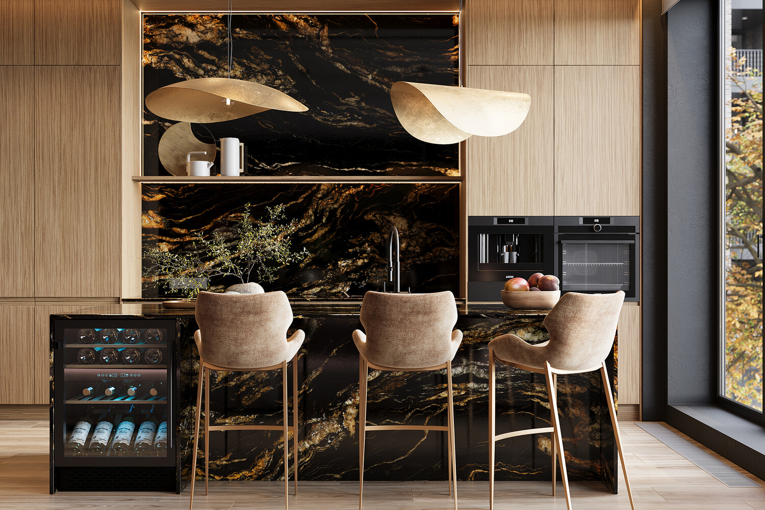 «Мрамор, гранит, оникс и кварцит обладают высокой прочностью, устойчивостью к механическим повреждениям и износу. К тому же, камень уникален по текстуре и оттенкам, что придает интерьеру особый статус, подчеркивая безупречный вкус хозяев», — заявила эксперт.