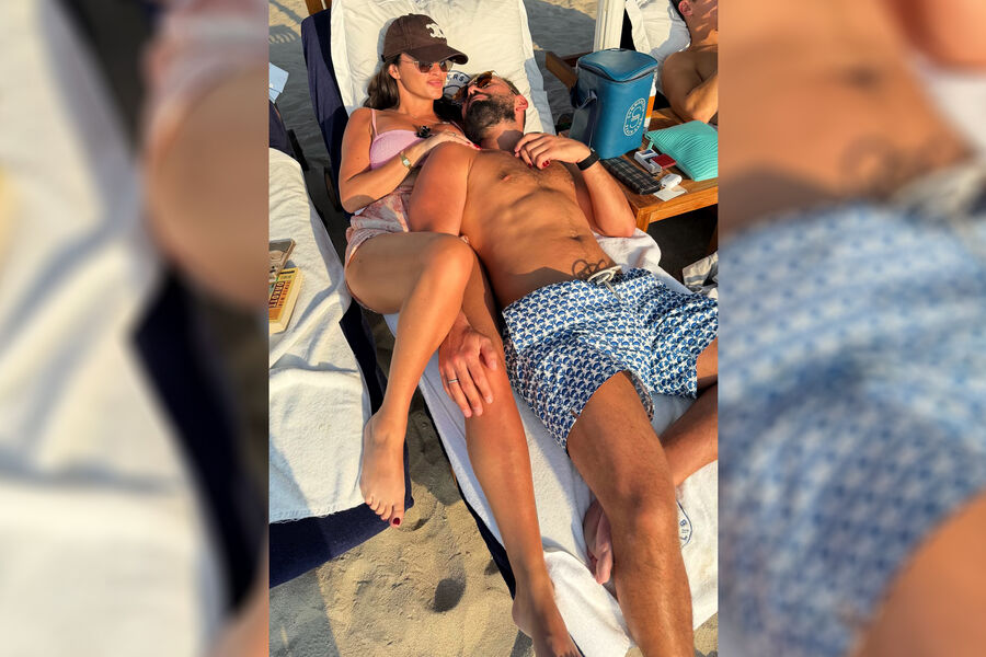 Ксения Бородина в купальнике скрыла живот от камеры на фото с мужем. Пара загорала на пляже в Дубае.