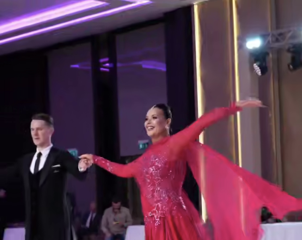 Оксана Федорова в красном платье с разрезами исполнила несколько танцев с партнером. Пара даже завоевала первое место в одной из категорий.
